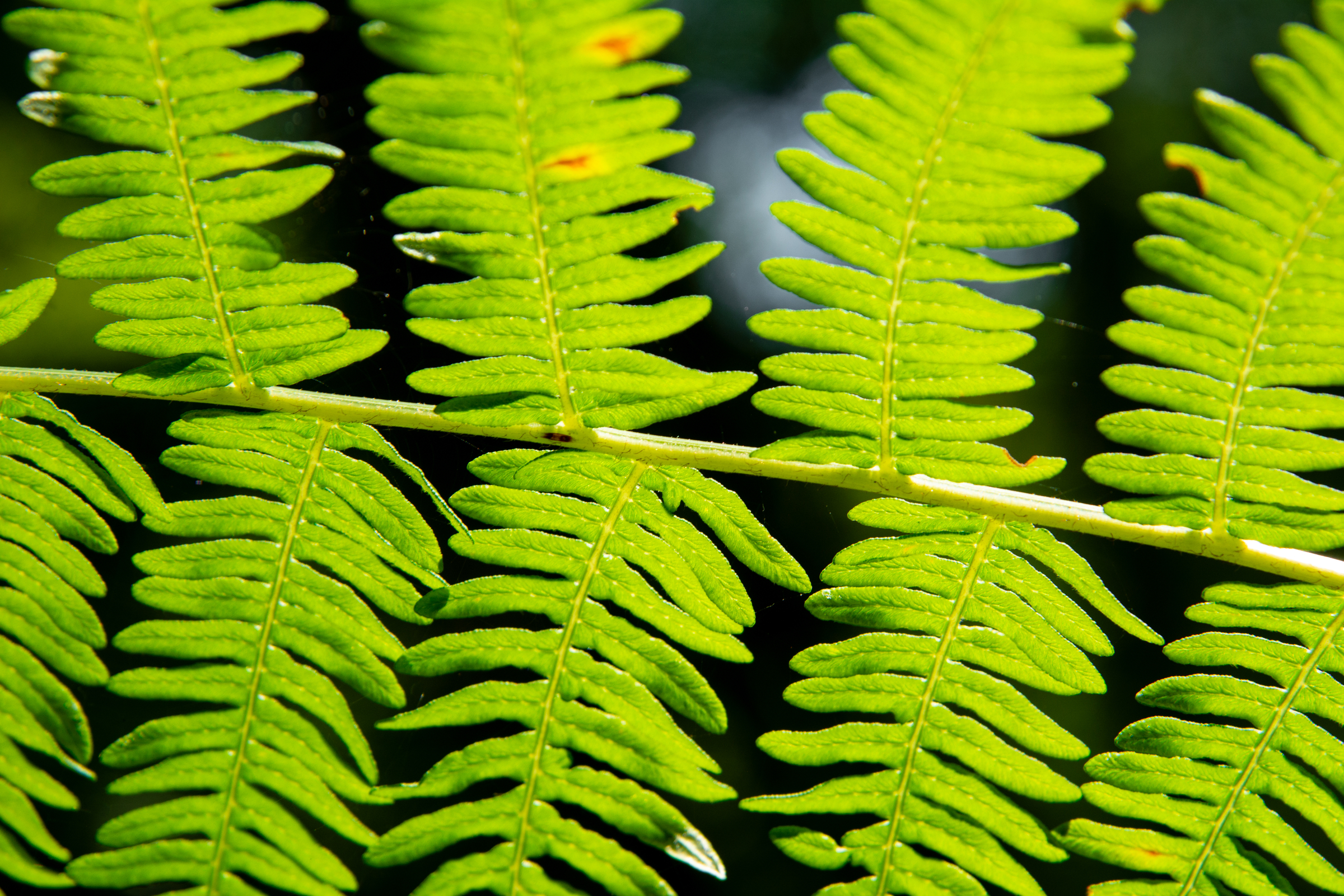 Farnwedel im Gegenlicht von unten als Makroaufnahme fotografiert